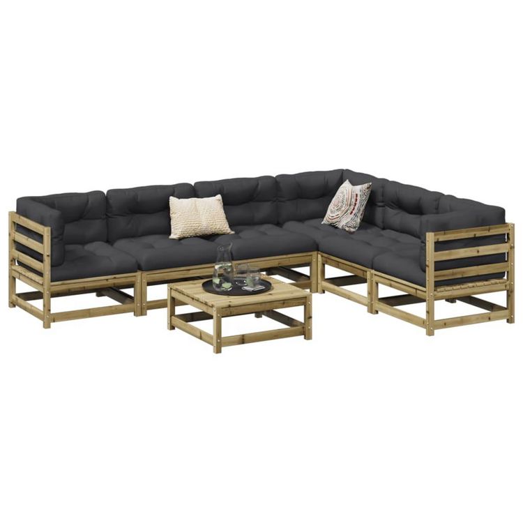 Salon de jardin 7 pcs avec coussins bois de pin impregne