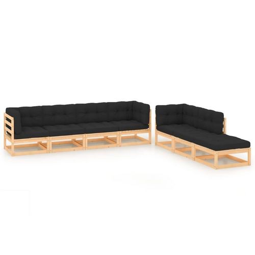 Salon de jardin 7 pcs avec coussins Bois de pin massif
