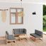 L'ensemble de salon de jardin est fabrique en bois de pin massif, ce qui le rend robuste et stable. Les coussins ajoutent un confort supplementaire. Vous pouvez le combiner avec d'autres segments modulaires pour creer vos propres configurations de salon de jardin !
