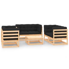 Salon de jardin 7 pcs avec coussins Bois de pin massif