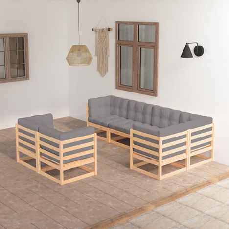 Salon de jardin 7 pcs avec coussins Bois de pin massif