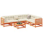 Salon de jardin 7 pcs avec coussins cire marron bois pin massif