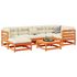 Salon de jardin 7 pcs avec coussins cire marron bois pin massif