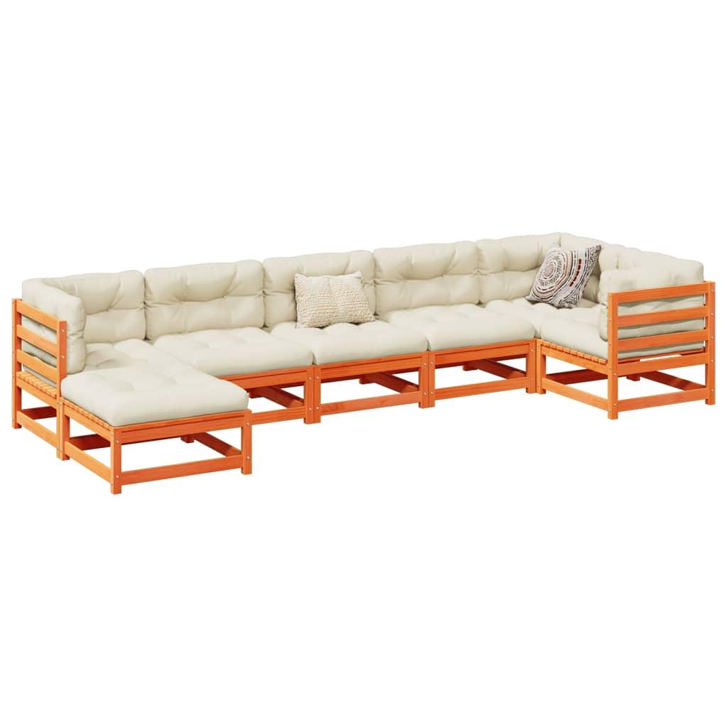 Salon de jardin 7 pcs avec coussins cire marron bois pin massif