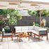 Cet ensemble de jardin est fabrique en bois d'acacia massif de haute qualite, un bois dur tropical, qui est resistant aux intemperies et tres durable. Grace a la finition a l'huile, l'ensemble de meubles de patio a une couleur chaude et est facile a nettoyer et a entretenir. De plus, la livraison comprend des coussins de siege et de dossier avec rembourrage epais pour un confort supreme.