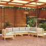 Salon de jardin 7 pcs avec coussins creme bois de pin massif