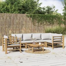 Salon de jardin 7 pcs avec coussins gris clair bambou