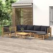 Salon de jardin 7 pcs avec coussins gris fonce bambou