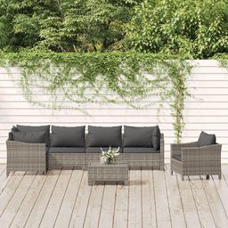 Salon de jardin 7 pcs avec coussins Gris Resine tressee