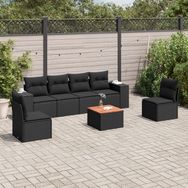 Salon de jardin 7 pcs avec coussins noir resine tressee