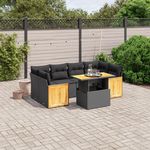 Salon de jardin 7 pcs avec coussins noir resine tressee