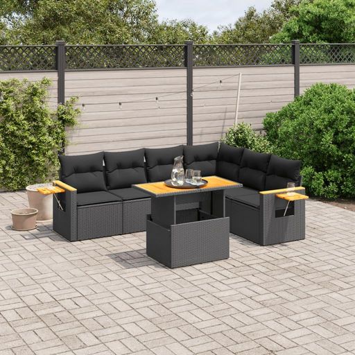 Salon de jardin 7 pcs avec coussins noir resine tressee