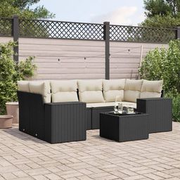Salon de jardin 7 pcs avec coussins noir resine tressee