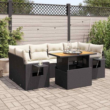 Salon de jardin 7 pcs avec coussins noir resine tressee