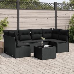Salon de jardin 7 pcs avec coussins noir resine tressee