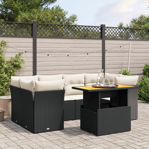 Salon de jardin 7 pcs avec coussins noir resine tressee
