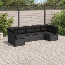 Salon de jardin 7 pcs avec coussins noir resine tressee