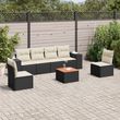 Salon de jardin 7 pcs avec coussins noir resine tressee