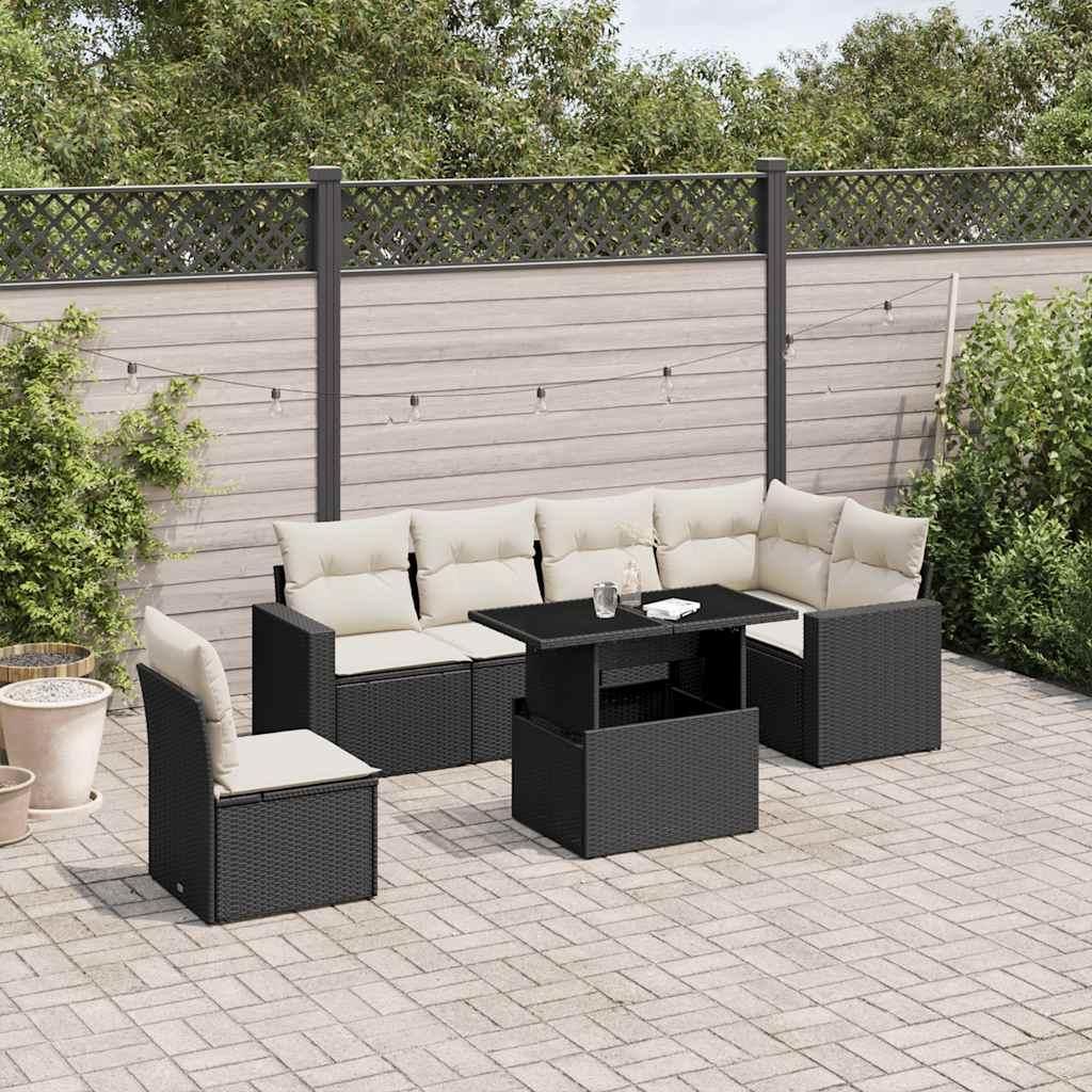 Salon de jardin 7 pcs avec coussins noir resine tressee