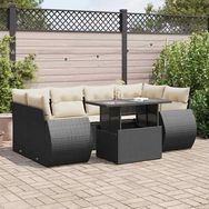 Salon de jardin 7 pcs avec coussins noir resine tressee