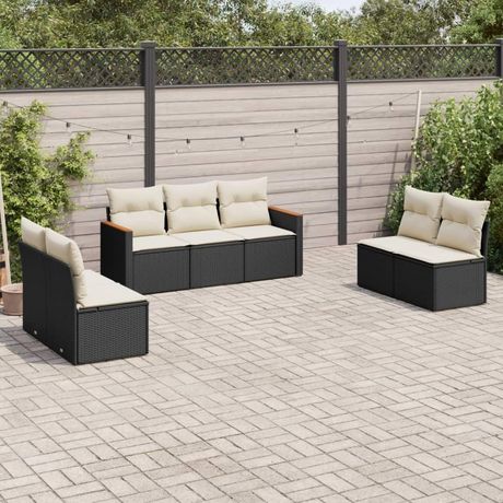 Salon de jardin 7 pcs avec coussins noir resine tressee