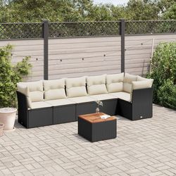 Salon de jardin 7 pcs avec coussins noir resine tressee