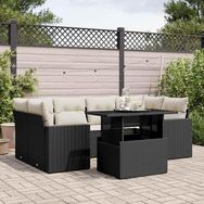 Salon de jardin 7 pcs avec coussins noir resine tressee