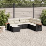 Salon de jardin 7 pcs avec coussins noir resine tressee