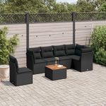 Salon de jardin 7 pcs avec coussins noir resine tressee
