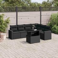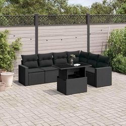 Salon de jardin 7 pcs avec coussins noir resine tressee