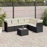 Salon de jardin 7 pcs avec coussins noir resine tressee