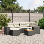 Salon de jardin 7 pcs avec coussins noir resine tressee