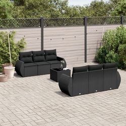 Salon de jardin 7 pcs avec coussins noir resine tressee