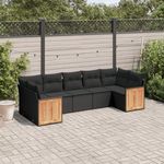 Salon de jardin 7 pcs avec coussins noir resine tressee