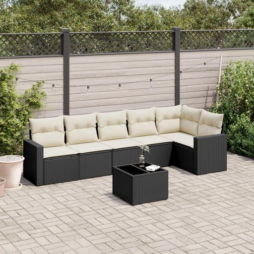 Salon de jardin 7 pcs avec coussins noir resine tressee