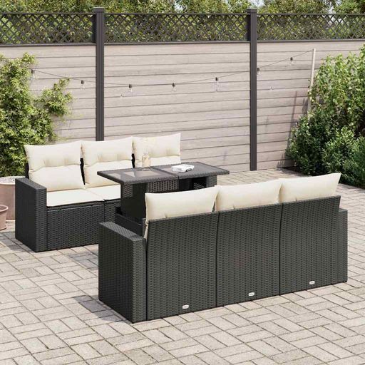 Salon de jardin 7 pcs avec coussins noir resine tressee