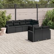 Salon de jardin 7 pcs avec coussins noir resine tressee