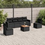Salon de jardin 7 pcs avec coussins noir resine tressee