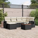 Salon de jardin 7 pcs avec coussins noir resine tressee