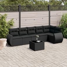 Salon de jardin 7 pcs avec coussins noir resine tressee