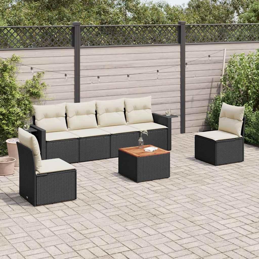 Salon de jardin 7 pcs avec coussins noir resine tressee