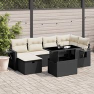 Salon de jardin 7 pcs avec coussins noir resine tressee