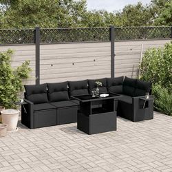 Salon de jardin 7 pcs avec coussins noir resine tressee