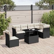 Salon de jardin 7 pcs avec coussins noir resine tressee