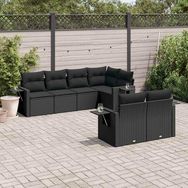 Salon de jardin 7 pcs avec coussins noir resine tressee