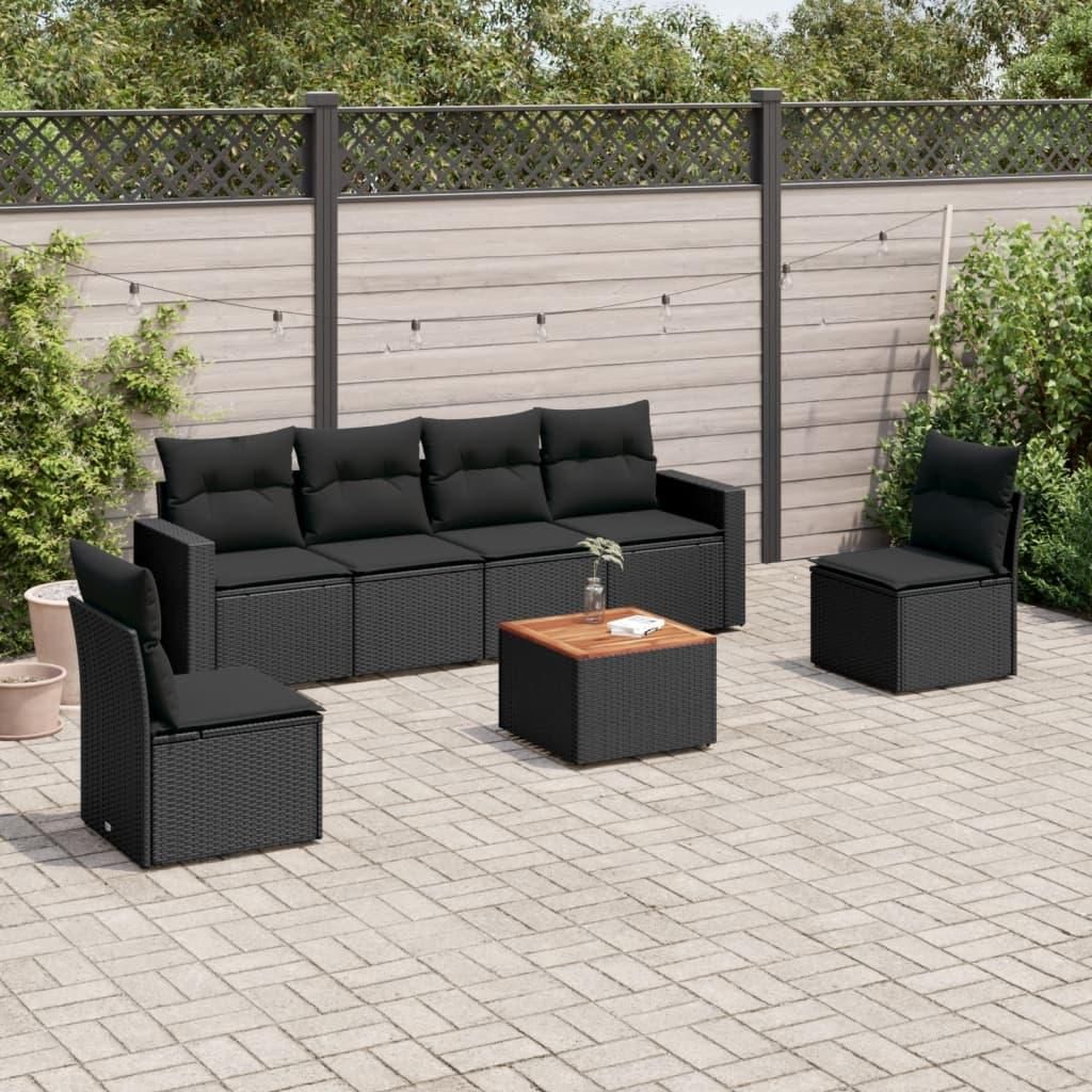 Salon de jardin 7 pcs avec coussins noir resine tressee