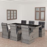 Salon de jardin 7 pcs avec coussins Resine tressee Gris