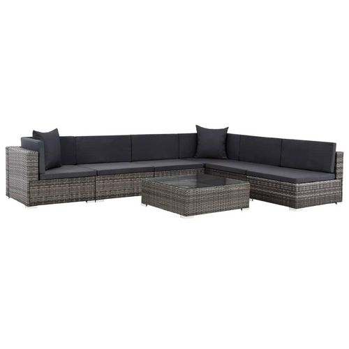 Salon de jardin 7 pcs avec coussins resine tressee gris
