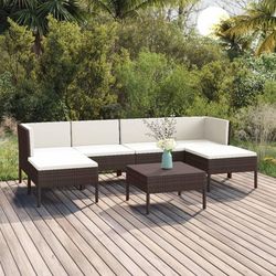 Salon de jardin 7 pcs avec coussins Resine tressee Marron