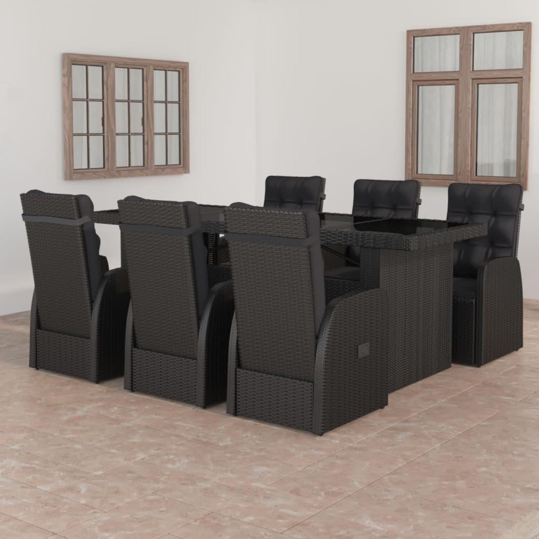 Salon de jardin 7 pcs avec coussins resine tressee noir
